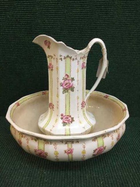 A box of assorted books - Dickens, poetry etc and a Devon ware toilet jug and basin