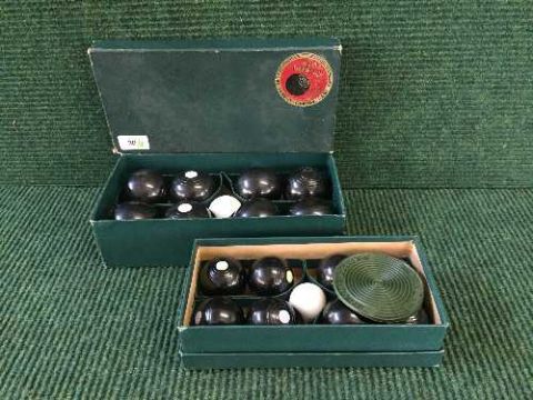 Two sets of B & A carpet bowls, both complete with jacks, one larger and one smaller set, both boxed. (2)