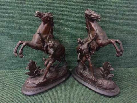 A pair of cast metal figures depicting horses