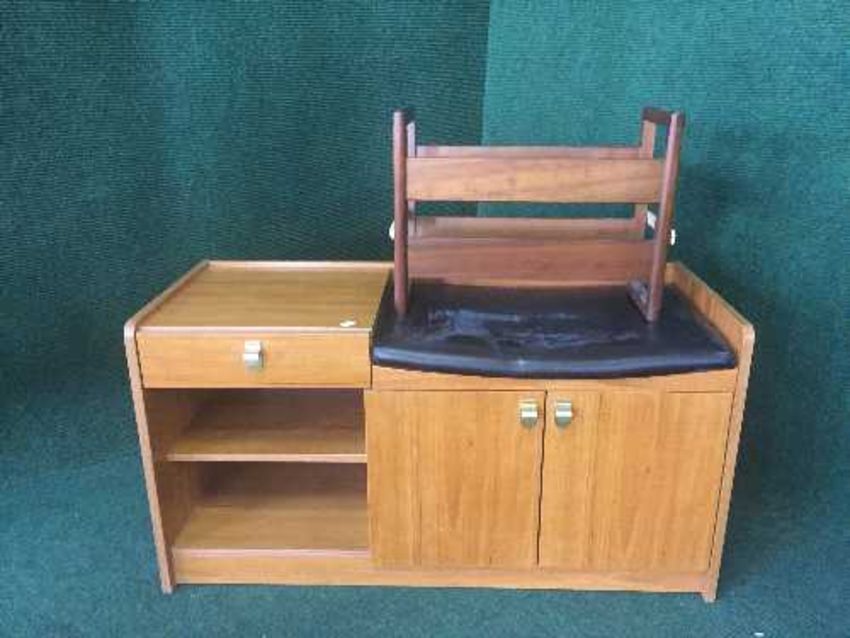 A late 20th century teak telephone seat and a mag rack