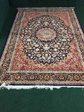 A silk finished fringed Kashan carpet, 280 cm x 200 cm, on blue ground