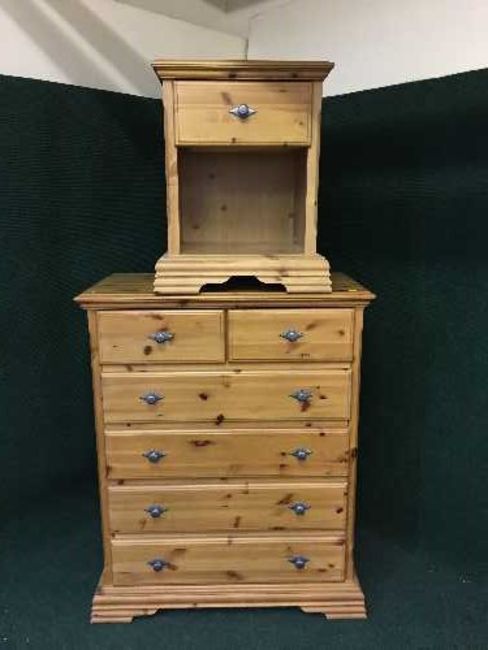 A pine six drawer chest and matching bedside stand