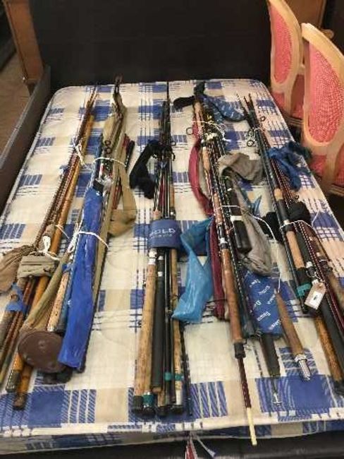 Five bundles of assorted fishing rods - split cane rods, boat rods, spinning rods, telescopic rods etc
