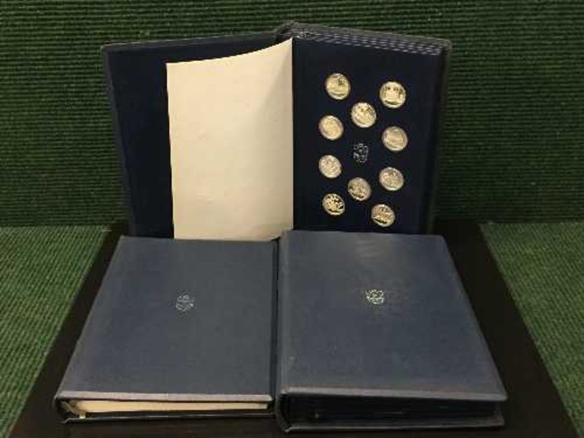 The 100 Greatest Inventions of Mankind, One hundred silver proof coins/medals, displayed in two albums, together with the companion booklet.