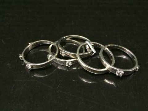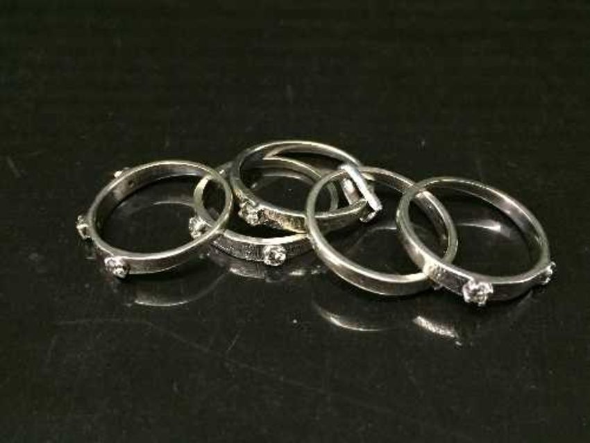 High carat white gold, tests 18, five-piece diamond ring with 9 stones approximately .6 carat, 8.3 grams