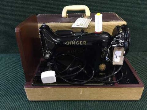 A cases singer electric sewing machine together with a cased manual typewriter
