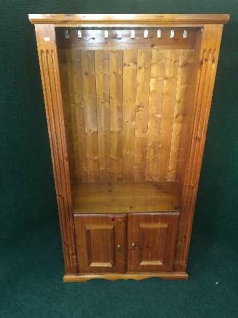 A pine cabinet fitted a coat rack