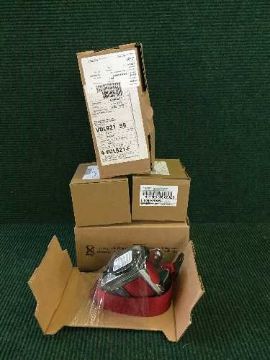 A full set of four replacement red seat belts for a Porsche 911 (997 variant), genuine Porsche parts, all boxed. (4)