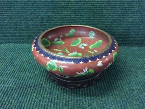 A Japanese cloisonne enamel bowl on hardwood stand
