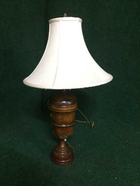 A contemporary wooden table lamp with shade