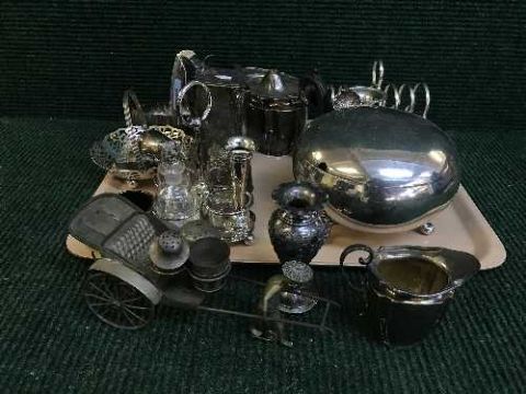 A tray of early 20th century plated ware