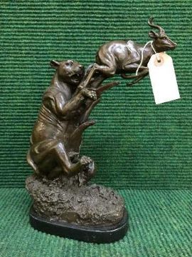 A bronze figure on marble base - lioness and gazelle