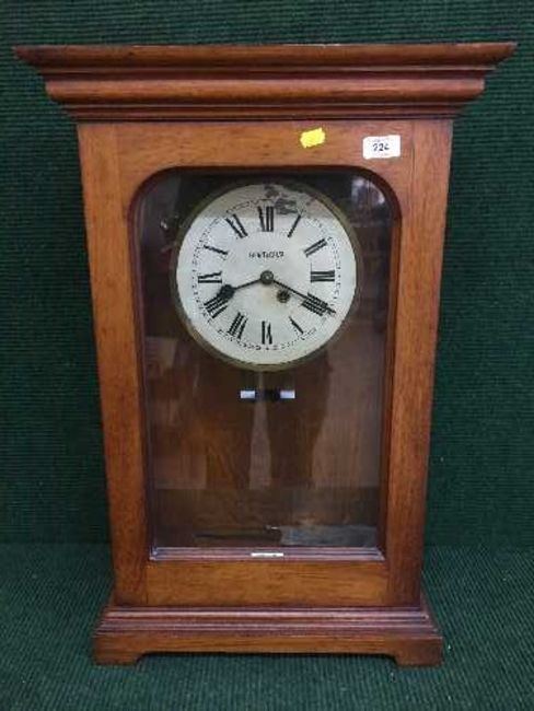 A large mahogany cased clock by Gent & Company Limited with pendulum and key