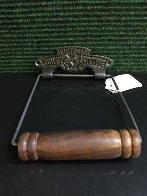 A reproduction metal Victorian toilet roll holder