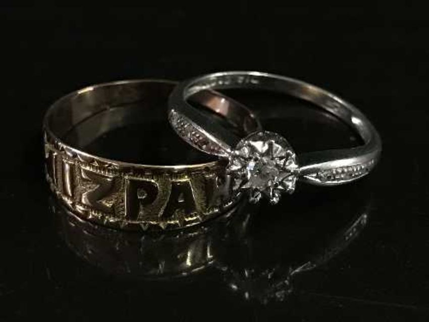 A 9ct gold Mizpah ring together with another 9ct dress ring. (2)