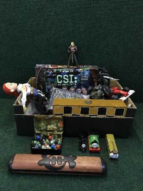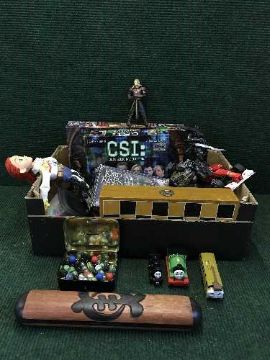 Box of Dungeon and dragons board game, Lord of the rings lead figures, marbles, chess boards, action figures, portable puzzle case