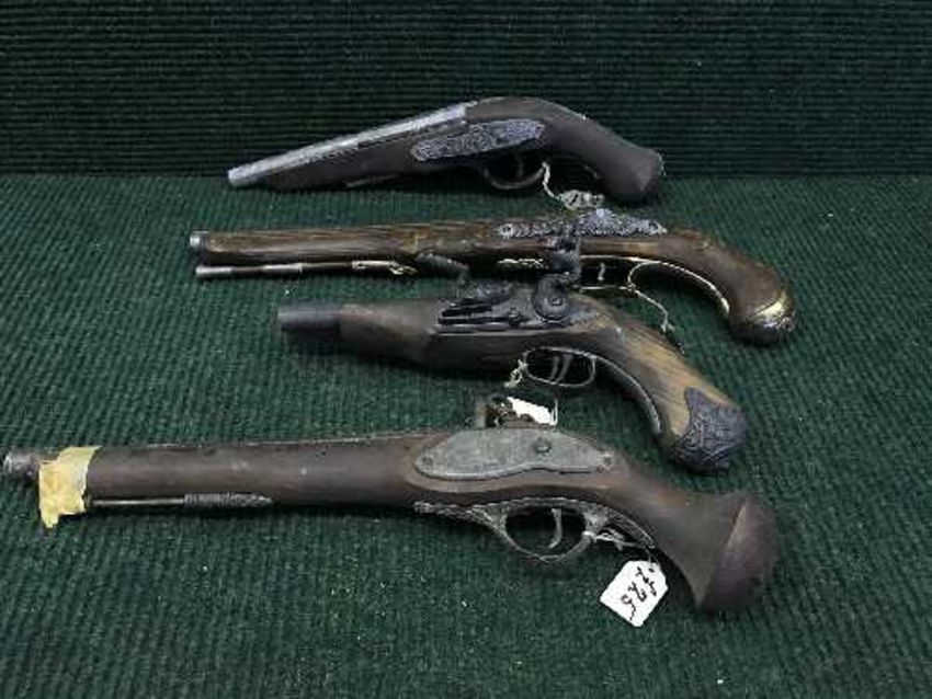 A basket of four replica flint lock pistols