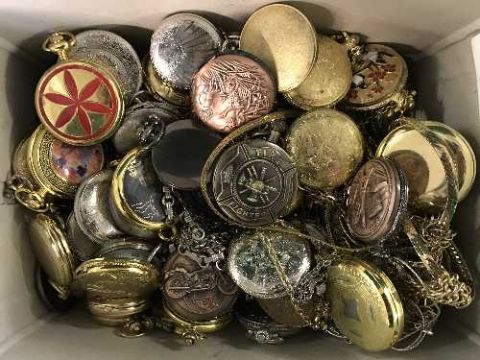 A box of contemporary pocket watches