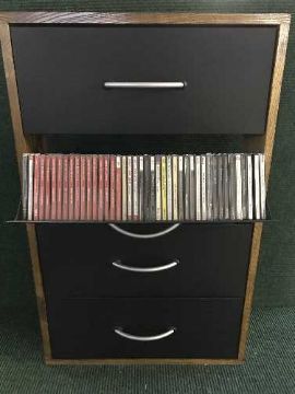 A contemporary four door cd rack containing a large quantity of classical cds