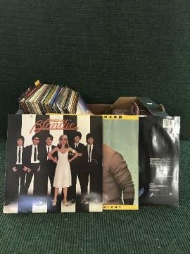 A box of lps and 45's - Blondie, Bad company etc