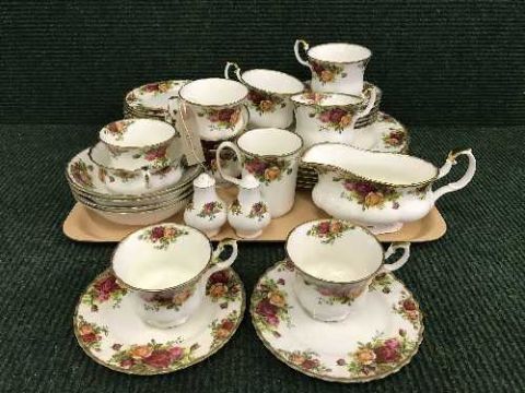 A tray of Royal Albert Old Country Roses tea set