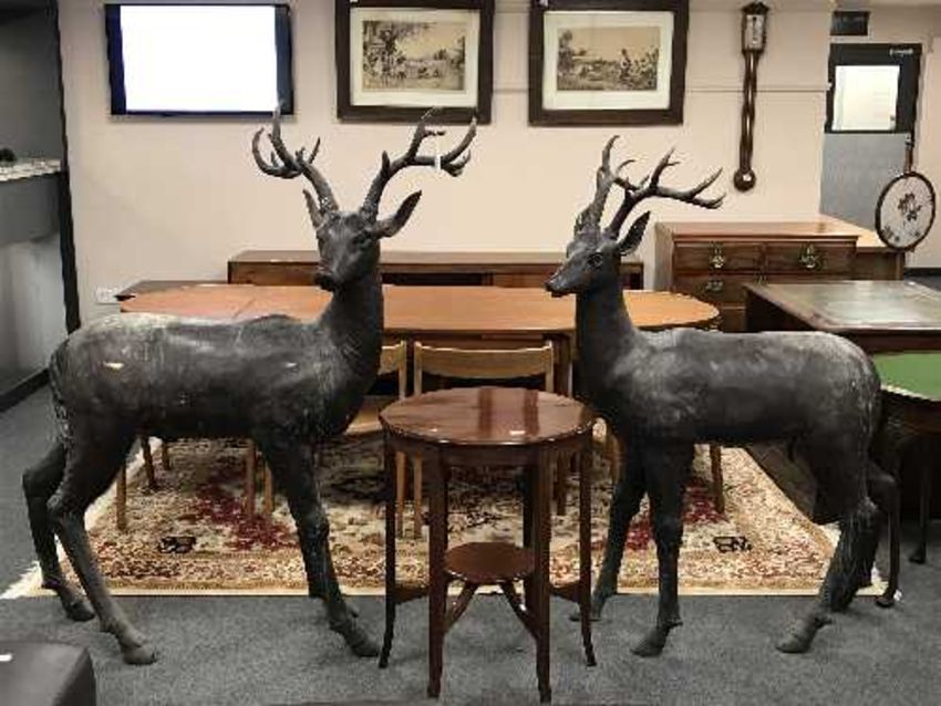 An impressive pair of bronze stag figures, height 156 cm. (2)