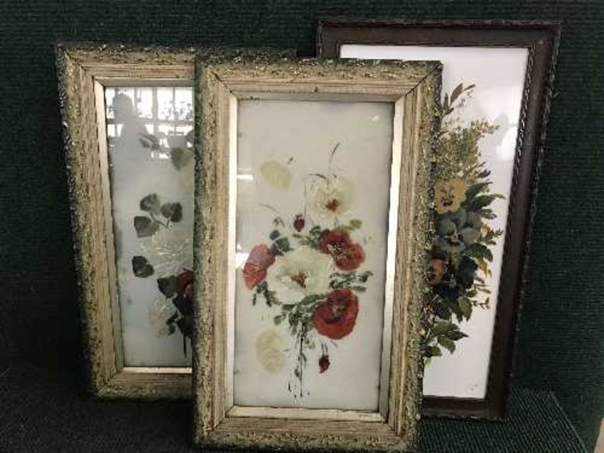 Three Edwardian hand painted mirrors and three panels (6)