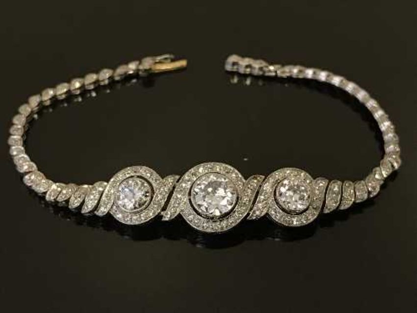 A white gold and diamond set bracelet, the total diamond weight estimated at 2.50 carats, weight 14.4g, length 17cm
