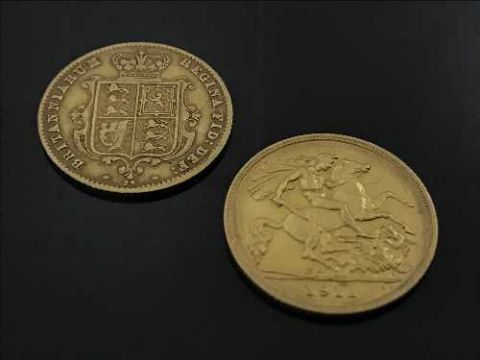 Two gold half Sovereigns dated 1911 and 1864, 7.9g. (2)
