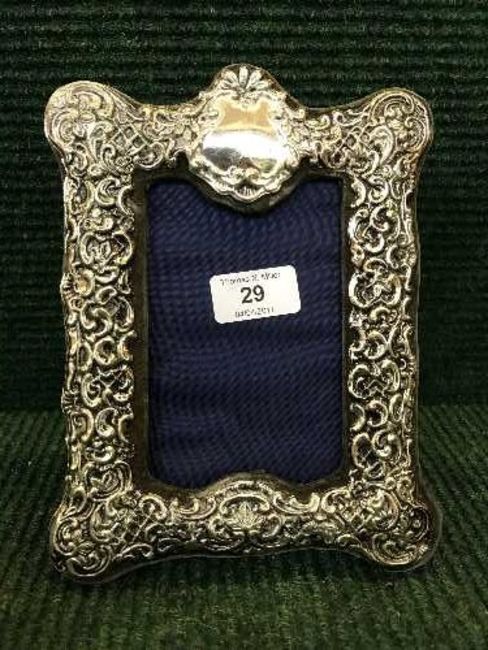 An early twentieth century white metal easel picture framed with embossed decorations, apparently unmarked.