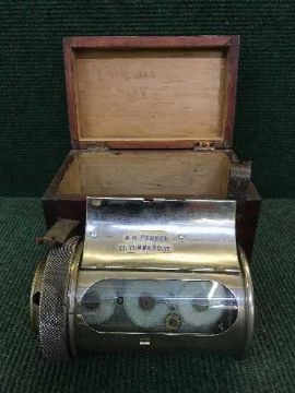 An early twentieth century chrome plated barrel clock, with key, in stained pine box.