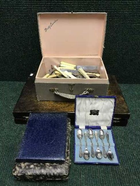 A part canteen of cutlery, basket of silver plated and steel table cutlery