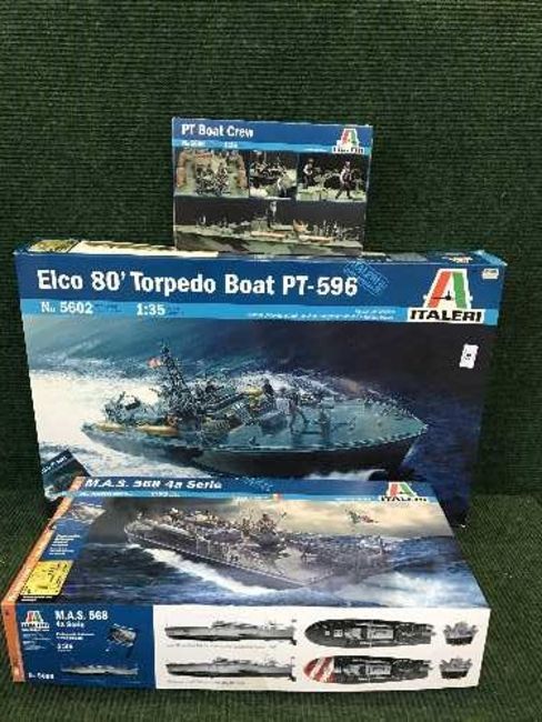 Three boxed Iteri plastic modelling kits - Elco 80 Torpedo Boat, Boat Crew etc