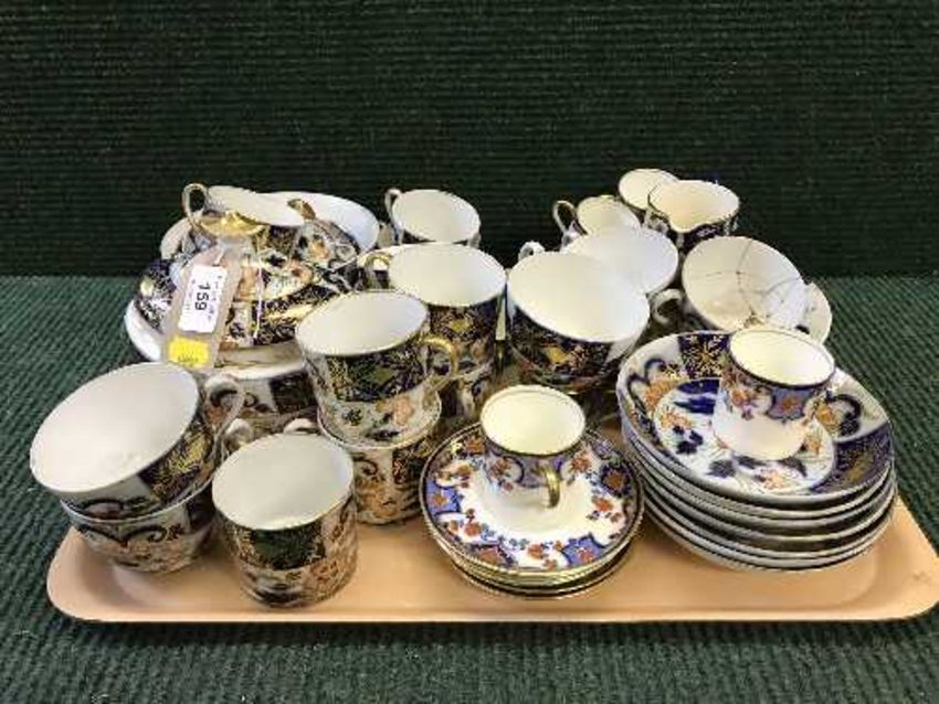 A tray of antique blue and gilt tea china, set of Aynsley coffee cans and saucers