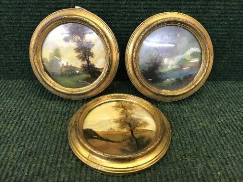 Three early twentieth century circular gilt framed oil paintings - Landscapes (3)