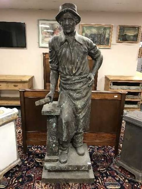 An impressive bronze statue - The Blacksmith with hammer, standing on plinth base, height 190 cm.