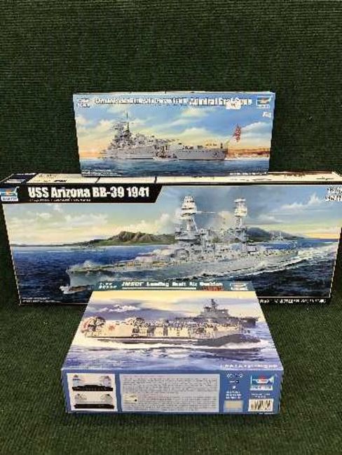 Three boxed Trumpeter plastic modelling kits - USS Arizon, GMSDF Landing Craft & German Pocket Battleship