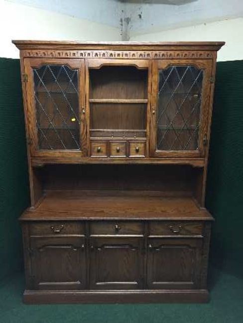 An oak leaded door corner unit and Jaycee oak leaded glass door dresser
