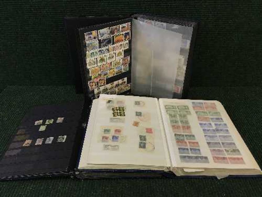 Three leather bound stamp albums containing British stamps