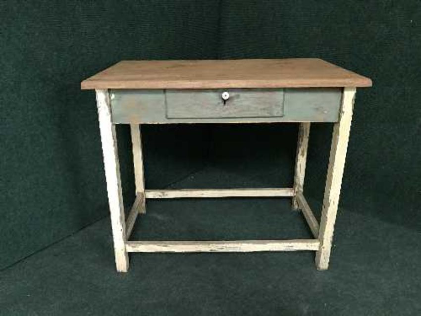 A painted pine kitchen work table fitted with a drawer