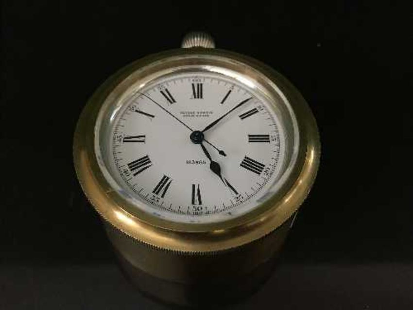 A fine Swiss silver cased centre seconds deck watch, signed Ulysse Nardin, Locle Suisse, enamel dial and movement both numbered 123885, contained in a brass case