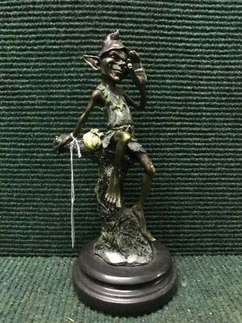 David Goode : A bronze figure of a goblin seated upon a tree stump, on marble base, signed.