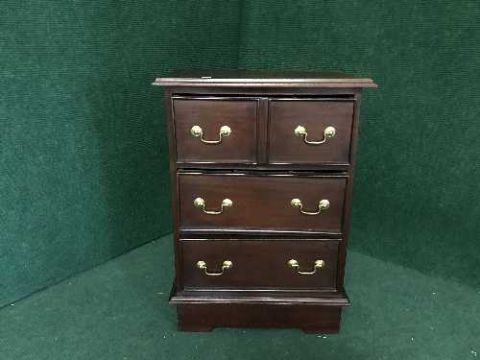 A mahogany three drawer chest with brass drop handles