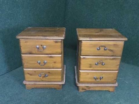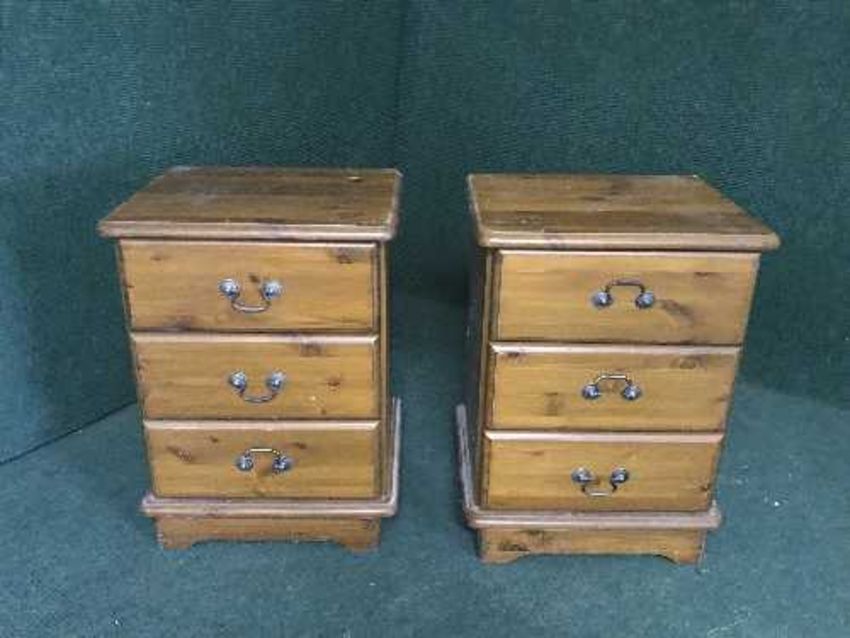 A pine four drawer chest and pair of bedside chests
