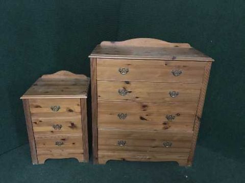 A pine four drawer chest and matching bedside chest