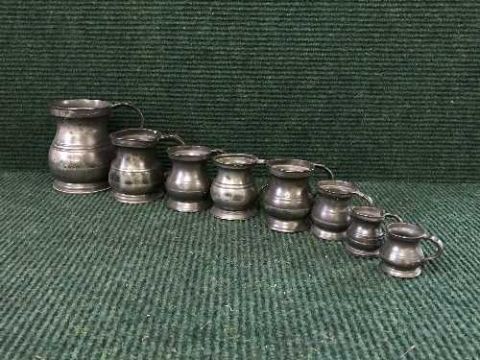 A set of eight graduated antique pewter measures