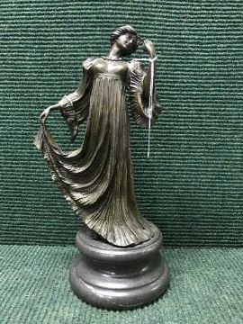 A bronze figure on marble base, lady in long flowing dress