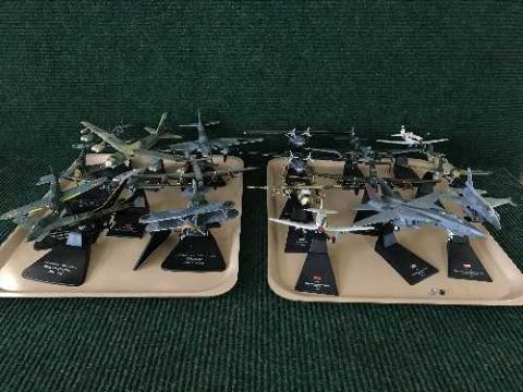 Two trays of twenty assorted die-cast and plastic airplanes on stands