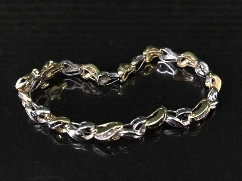 A two-tone gold (tests 18ct) diamond and sapphire set bracelet, the total diamond weight estimated at 1.5 carat, length 19cm, 15.2g