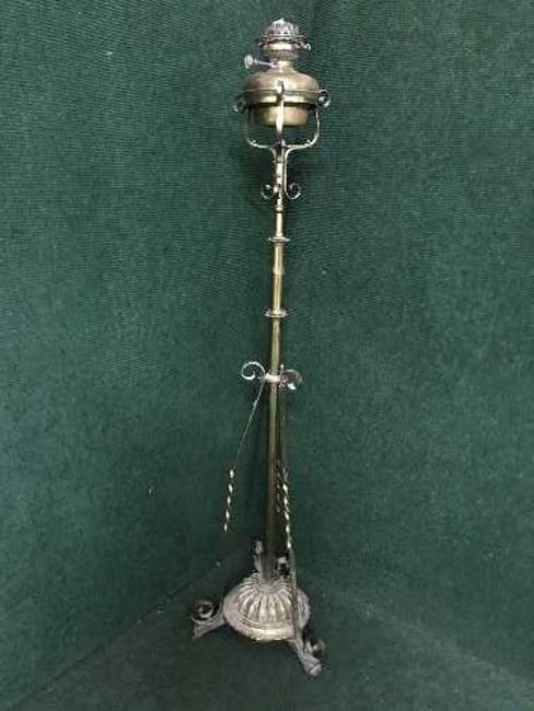 A late nineteenth century telescopic brass oil lamp with chimney and shade